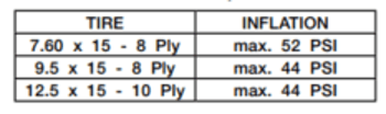 Tires: Ensure that tires are in good working condition. Ensure that tires are operating at the proper pressure recommended in owner’s manual.