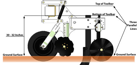 5) Pivoting Coulter Tube and Outer Wing Adjustment: